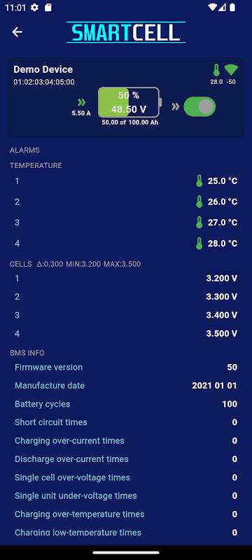 SmartCell™️ 是 SmartCell™️ 電池製造商的專有行動應用程式。它將允許您將 Android 智慧型手機連接到您的 SmartCell™️ 鋰電池,並透過藍牙線上監控電池效能(即時電壓、電流、剩餘容量、剩餘時間和電池溫度)。它給您的是-安心!你一切盡在掌握。