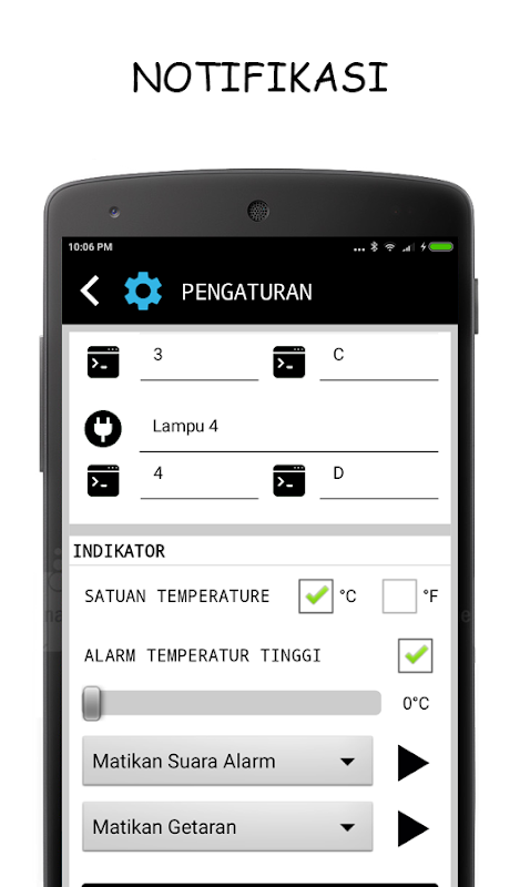 Dengan menggunakan aplikasi ini, anda dapat mengontrol dan memonitoring device yang terpasang di dalam rumah anda hanya dengan menggunakan smartphone android. Contohnya seperti menyalakan peralatan elektronik, atau hanya sekedar memantau Temperatur (°C / °F) dan Kelembapan di ruang rumah anda.