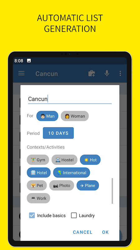 ✈ 此應用程式會根據旅行時間、性別和旅遊場景/活動(例如:天氣冷暖、搭飛機、自駕、商務出行、攜帶寵物等)自動推薦出遊必備物品。