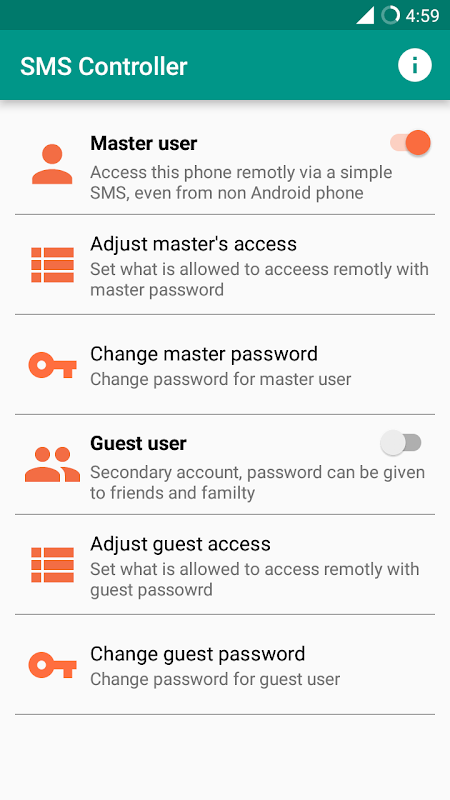 "SMS Controller for Android" allows its user to use features of android phone while they are away from their phone. Phone can be controlled by sending a simple SMS to the phone. The phone on which SMS Controller is installed responds to incoming SMS and performs operation based on contents of the SMS.