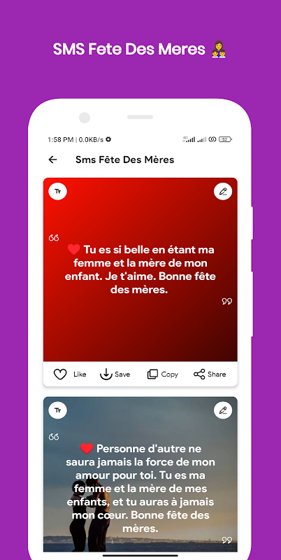 通過 SMS D'amour touchants 應用程序表達您的愛意。