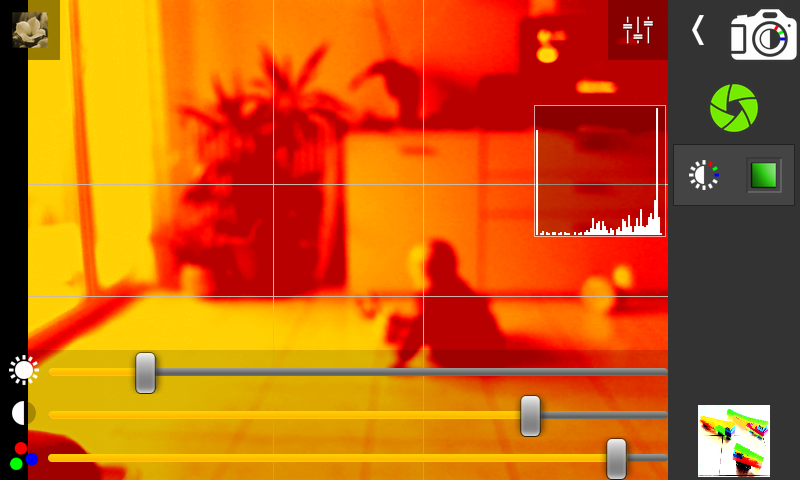 • accesso a tutti i parametri (flash, bilanciamento del bianco, fuoco, scene, zoom, effetti) supportati dall'hardware