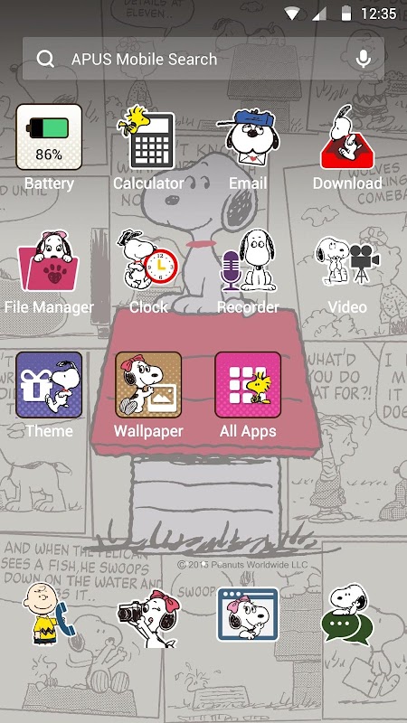 APKPure 使用簽章驗證功能,確保為您提供無病毒的 APUS的Snoopy主題 APK 下載。