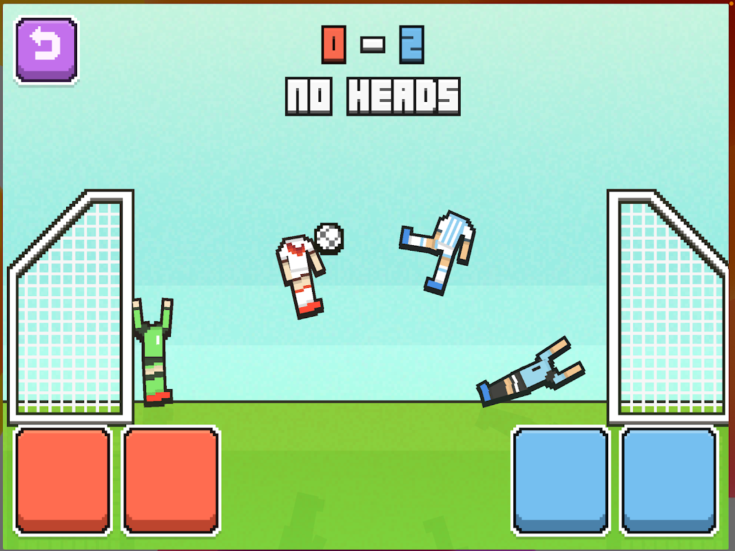 點擊按鈕跳躍和踢球。您只需一個按鈕即可控制您的兩名足球運動員。將球踢進對手的球門得分。