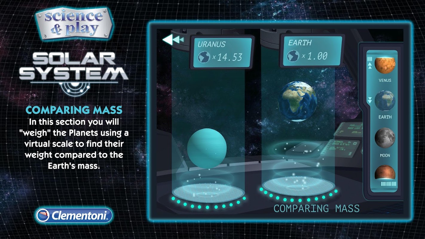 您將能夠學習許多有趣的科學事實和瑣事,探索行星表面並比較它們的大小,質量和主要特徵。