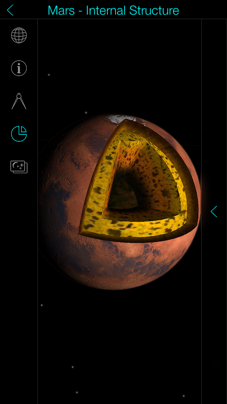 让我们在宇宙中找到更多关于我们的邻近行星,透过确定的速度,回转周期,时间,享受穿梭其间。选择一特别星球成为宇宙的中心,就能看到土星,木星,火星和天王星的卫星。在三维模型中的太阳系漫游应用 程式是 完全 与真实 太阳系相同的。