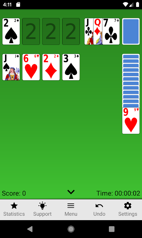 This version is the timeless classic that many people just call "Solitaire." Try to clear all the cards from the table using one or three-card draw, while using traditional scoring or the Vegas scoring system.