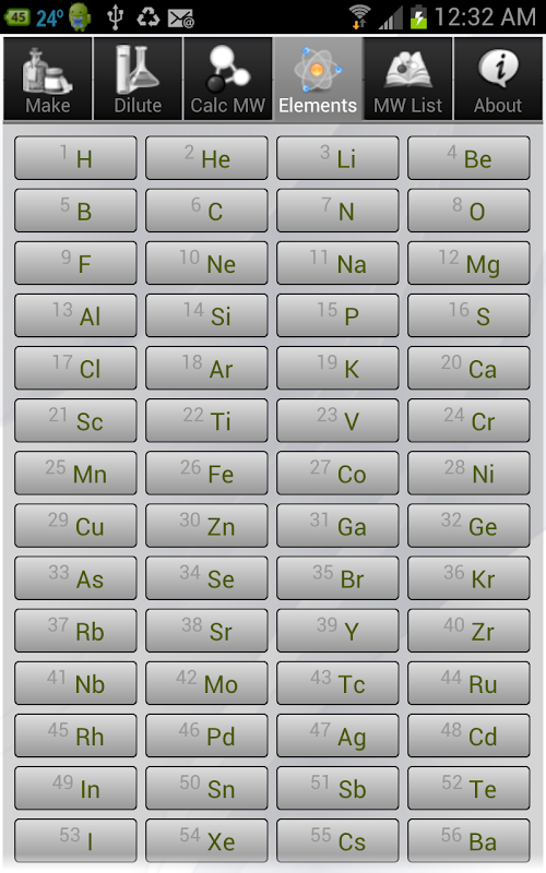 (2)它包含了一個方便的工具來計算分子量(MW)的常用化學品實驗室。你並不需要輸入名稱或化學分子式,您只需按幾個按鈕來獲得該化學品的MW瞬間。