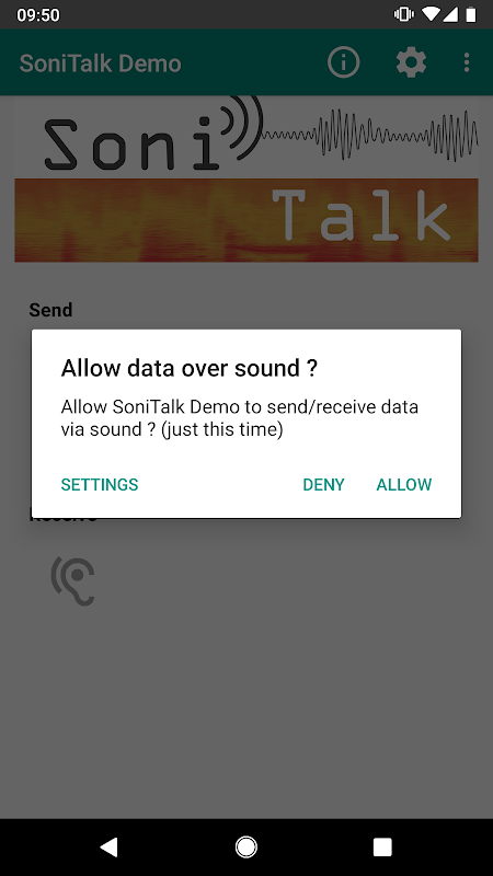 SoniTalk演示應用程序演示瞭如何使用SoniTalk SDK進行聲音通信。默認設置使用(近)超聲頻率。