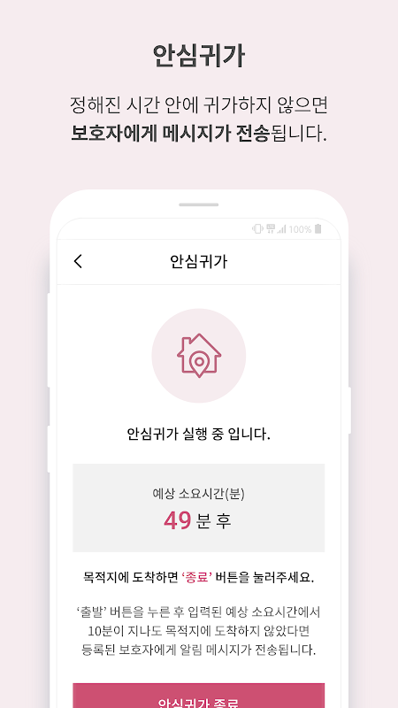 귀갓길, 정해진 시간 안에 도착하지 않으면 보호자에게 알림 메시지 전송