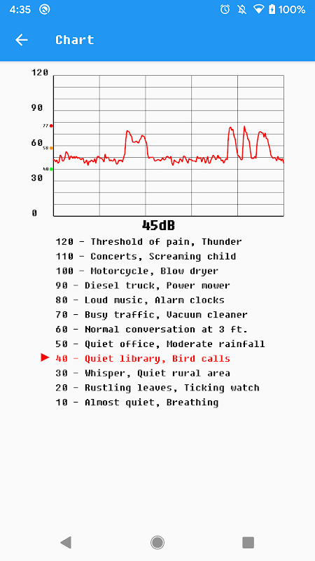 This app will use the phone microphone to measure environmental noise decibels (dB) and show a value for reference.
