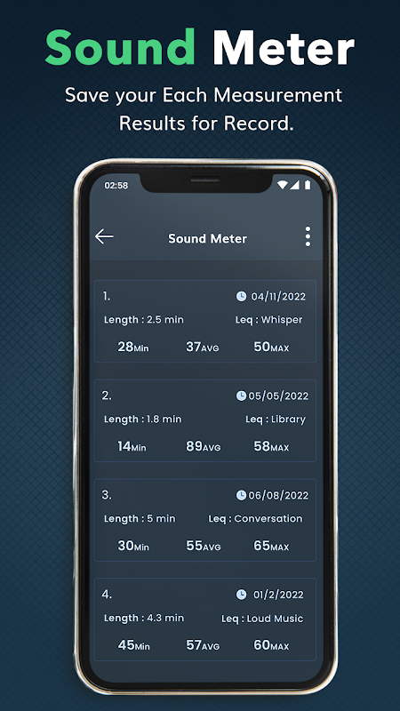 聲級計:聲壓級計(SPL 計)應用程序通過測量環境噪聲來顯示分貝值,以各種形式顯示測量的 dB 值。您可以通過這款智能聲音計應用程序體驗高幀的整潔圖形設計。