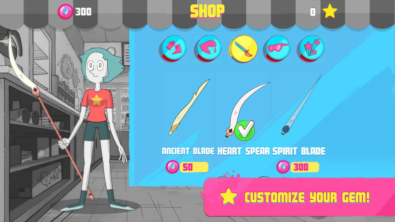 Choose a Quartz, Ruby, or Pearl and make them your own. Customize your gem with hair, outfits, accessories, and weapons! Unlock even more options as you play.
