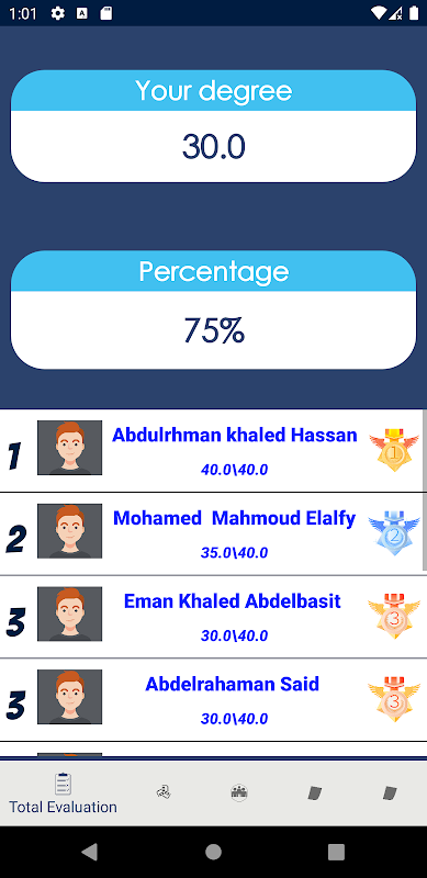 Finally, this is our application made by our Android Committee. The app has several interesting sections such as the evaluation section which helps our members to know their progress and improvement. Also, there is the question part. This section has a very interesting monthly competition and evaluation exams.