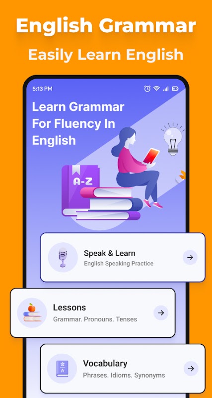 在課程部分,您將找到基本的語法主題,例如詞性、短語、從句、後綴/前綴、標點符號、時態、主動/被動語態以及直接/間接引語。這些主題為各個層級的學習者奠定了堅實的語法基礎,幫助您增強書面和口語溝通。透過學習英語學習語言,文法學習變得互動且易於理解。