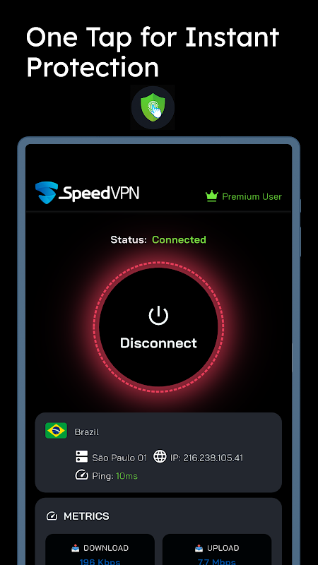 一鍵連接:我們用戶友好的介面使連接到安全的 VPN 伺服器變得非常簡單。只需輕輕一按,即可獲得保護。
