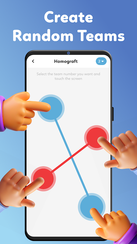 使用隨機選擇器在幾秒鐘內創建平衡的團隊。手指拾取器功能可隨機分配人員,非常適合團體活動、遊戲或活動,無需麻煩。