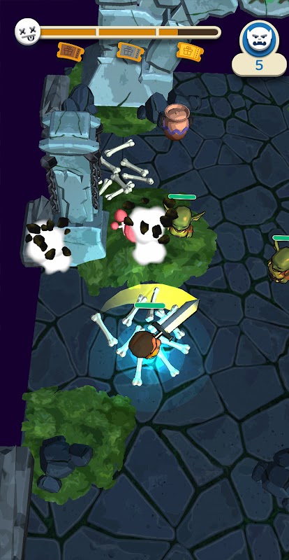 Move your Hero throughout the Dungeon as he spins, and spins, and spins, and - wOaHhH got a little dizzy for a second. Bash enemies around with your oversized sword, THEY GO FLYING! Defeat levels as fast as you can for bonus rewards; it’s time to SPIN!