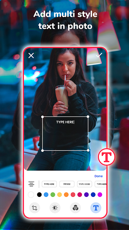- 應用照片編輯工具,如濾鏡、效果、文本、裁剪、亮度、對比度等
