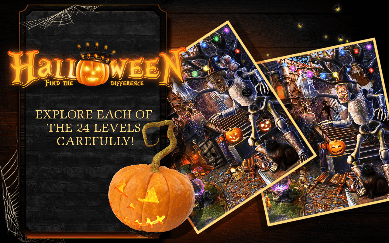 解决最大的万圣节之谜和找到差异与最有趣的发现差异游戏! 万圣节找到差异将使今年的万圣节更令人兴奋和令人毛骨悚然!进入我们的幽灵鬼屋,探索尘土飞扬,蜘蛛网缠绕的角落和缝隙,并试图找出两张相似图片之间的区别。你是一个好的差异吗?你喜欢玩找到不同的游戏与华丽的图形和有趣的功能?如果是的话,为生命中的冒险做好准备并使这个万圣节特别 - 下载最好的找到游戏,像专业人士一样经历各级别并问自己:有什么不同?