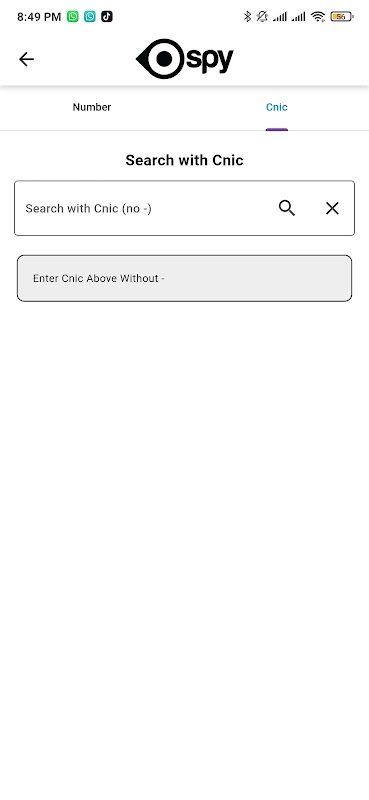 • 輸入不帶破折號的 CNIC 號碼並獲取所有者詳細信息等詳細信息,