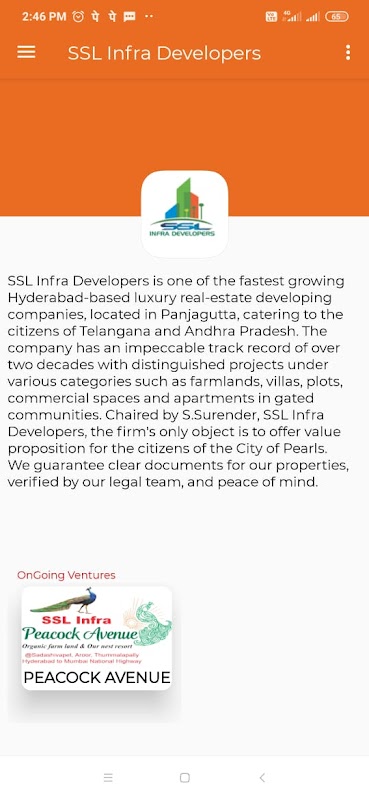SSL Infra Developers是位於海得拉巴增長最快的豪華房地產開發公司之一,位於Panjagutta,可接待Telangana和安得拉邦的居民。該公司在過去的二十多年中擁有無可挑剔的記錄,在各個類別下都有傑出的項目,例如農田,別墅,地塊,商業空間和封閉式社區中的公寓。該公司的唯一目標是由SSL Infra Developers S.Surender擔任主席,旨在為珍珠之城的市民提供價值主張。我們保證為我們的財產提供清晰的文件,並由我們的法律團隊核實,使您高枕無憂。