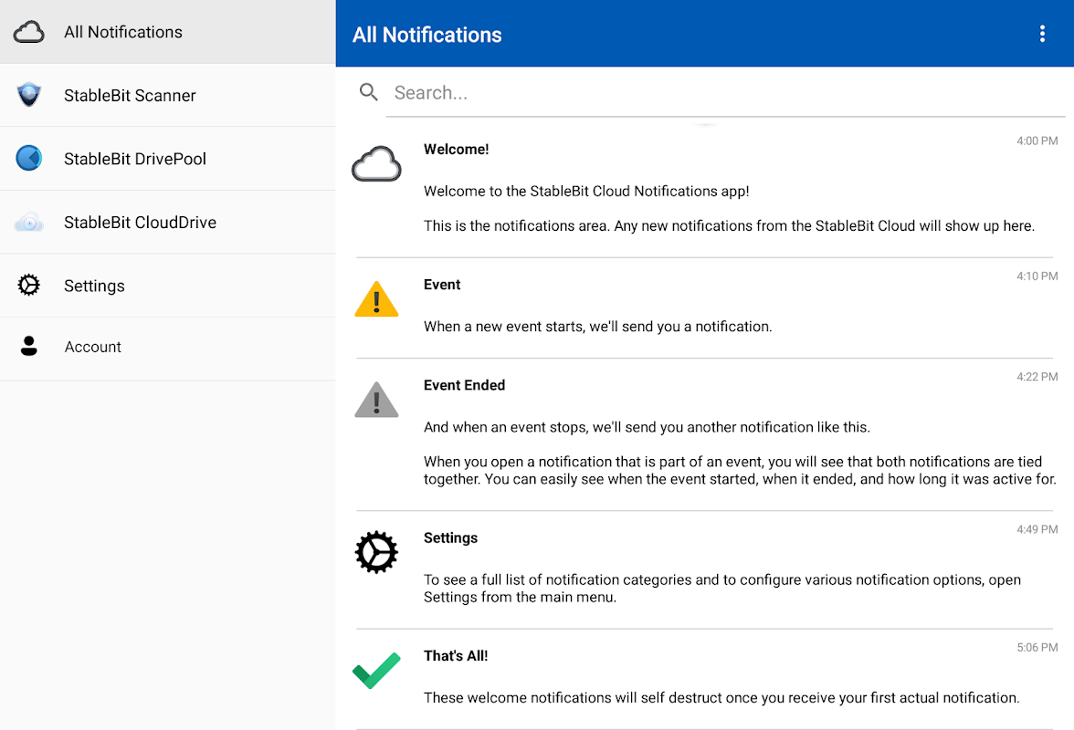 在您的 Android 移動設備上接收來自 StableBit Cloud (https://stablebit.cloud) 的通知。