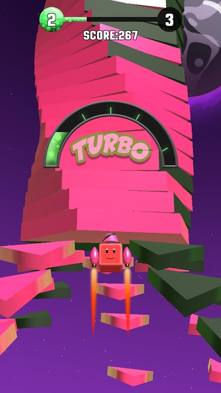 Your cube fly as a rocket by breaking the colorful platforms, but watch out for black platforms, if you break the black platforms you will start over.
