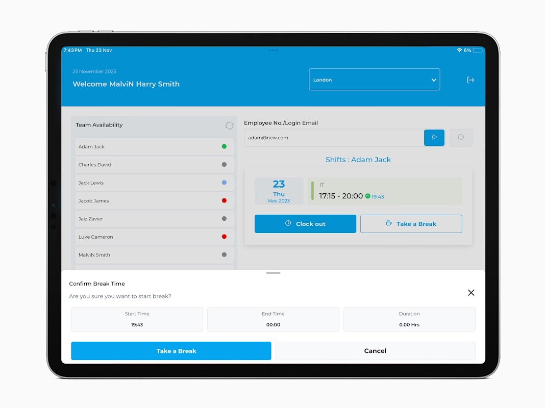 Wenodo 的 Staflexx 打卡終端機是無縫管理員工出勤的完美平板電腦解決方案。該應用程式專為管理員設計,可將您的平板電腦轉變為功能強大的打卡終端,讓員工可以透過選擇預定的班次輕鬆打卡或下班。使用 Staflexx 打卡終端簡化出勤追蹤並提高工作效率!