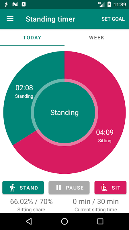Standing and sitting time tracker that notifies when sitting too much. Perfect for people who are concerned about their health at work in the office and want to monitor and improve their sitting habits.