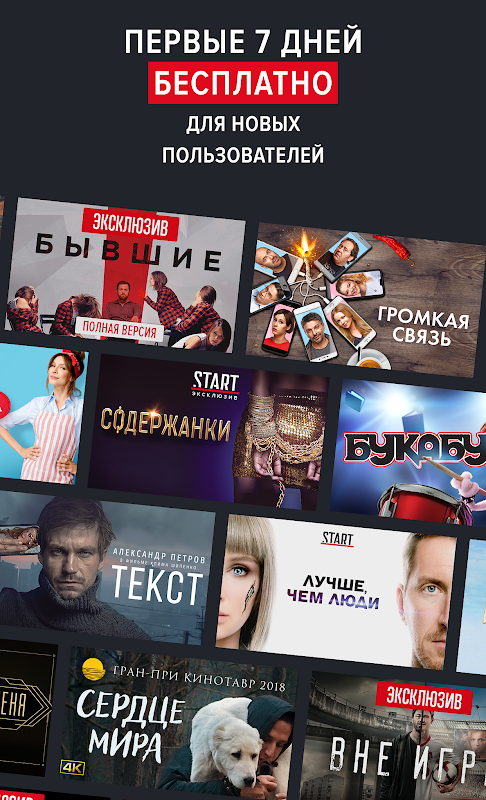 Смотрите новинки кино и эксклюзивные сериалы в превосходном качестве! Только на START можно посмотреть такие нашумевшие сериалы, как «Содержанки», «В клетке», «Лучше, чем люди», «Бывшие» и «Шторм». На START нет рекламы, а за премьеры и новинки не нужно доплачивать: всё уже включено в единую подписку.