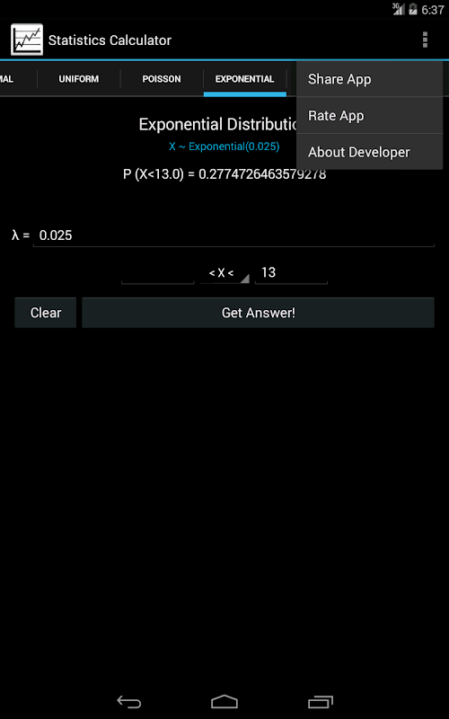 以一個統計課程在高中或大學?那麼這就是你一定會想檢查你的答案的應用程序。憑藉其豐富的,易於使用的用戶界面統計計算器將幫助您找到隨機變量按照一定的概率分佈的概率。