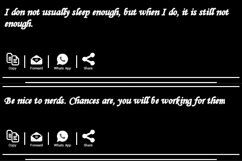- Particular status having functionality like Copy, Forward, Share with whatsapp, Sharing with installed social application.