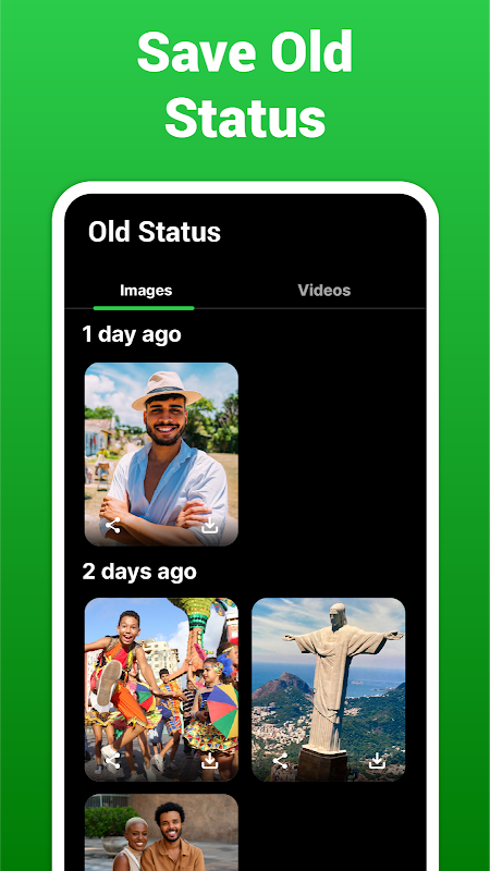 只需單擊一下,我們的視訊狀態應用程式功能即可確保您永遠不會錯過聯絡人的重要更新。將狀態更新直接儲存並下載到裝置的圖庫中,保留難忘的時刻以供日後欣賞。我們的整合狀態保護程式 - 狀態下載應用程式提供對狀態影片的無縫訪問,讓您輕鬆觀看和下載它們。