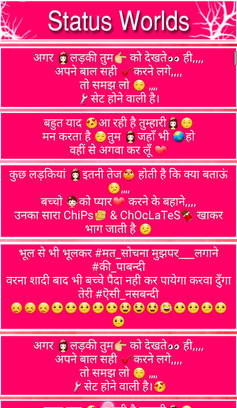 Latest whatsaap status and Shayari 10000+ has a huge set of messages and lovable shayari and social quotes