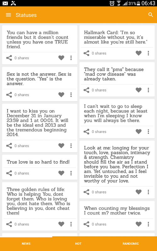 APKPure 使用簽章驗證功能,確保為您提供無病毒的 Statuses for Various Occasions APK 下載。