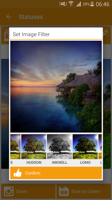 您可以創建帶有狀態和圖片的精美圖片,並將其發佈到Instagram,Whatsapp,Facebook,VK和任何其他社交網絡。