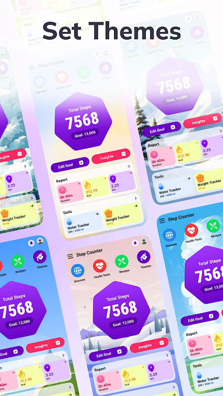 該應用程式以用戶友好的圖表形式提供即時步數追蹤和詳細報告。一眼便可追蹤您的步數、距離和燃燒的卡路里。您還可以設定個人目標並監控您的長期進度。
