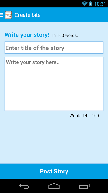 As you can get idea form app name this app allows you to write a bite (part) of the stories, you can write small stories near about 100 words.