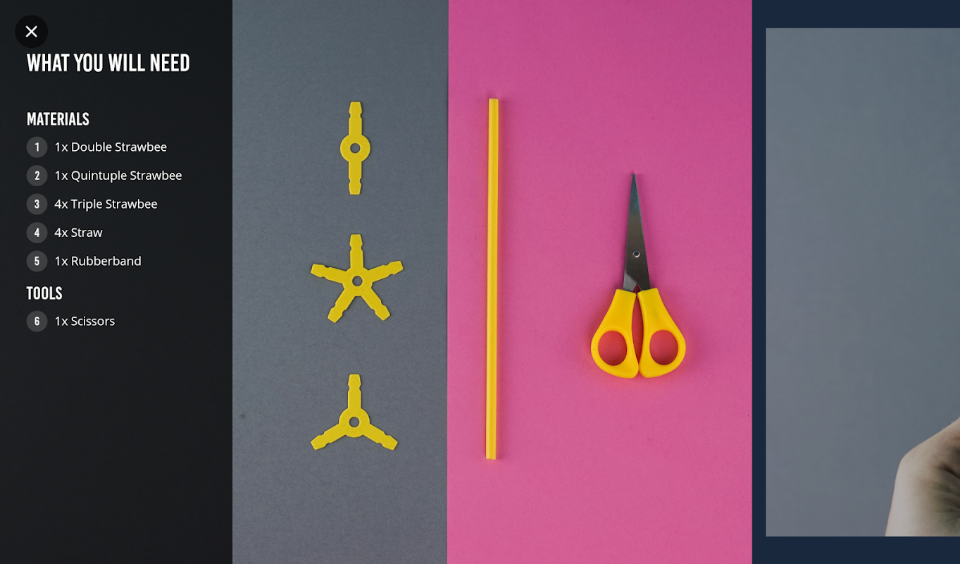 Strawbees app uses a fun, challenge-based format that was developed by Makeree, which rewards you with skill points for completed challenges. The Strawbees app guides you through the building process of exciting projects and teaches you how to customize them in a fun and easy way, using beautiful pictures and hints.