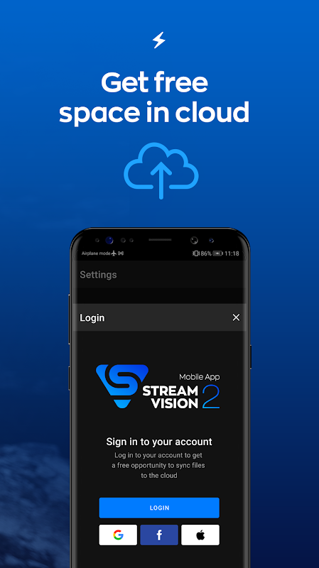 使用您的 Facebook 或 Google 帐户登录以获取 Stream Vision 2 Cloud 中的免费空间,以获取最令人难忘的户外视频和照片。将您的文件与云同步,并在任何手机、平板电脑或 PC 浏览器中打开它们。