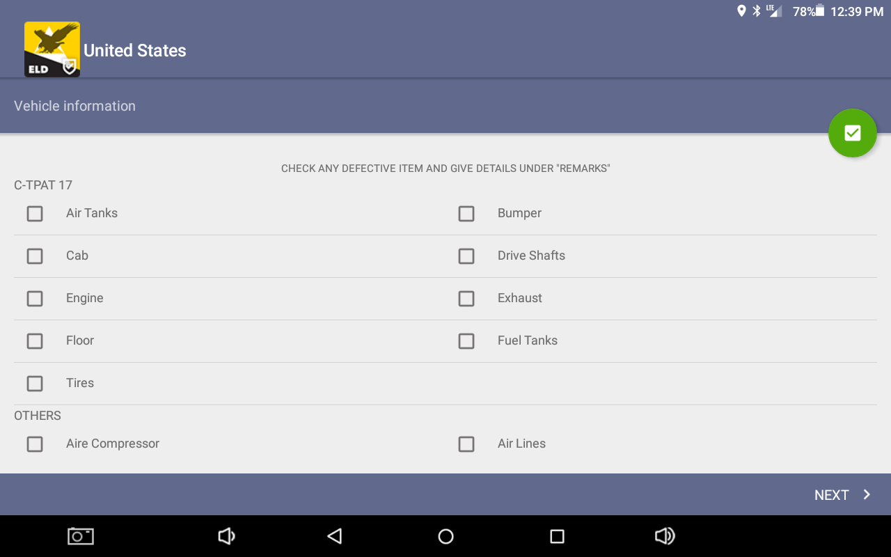 • Customizable vehicle inspection list to meet unique equipment specifications