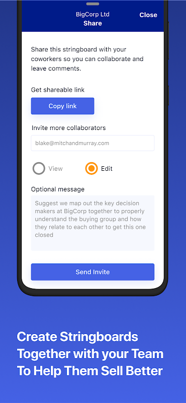 Stringboard 通過交互式可視化利益相關者地圖幫助您贏得更多高價值的企業銷售交易。管理和跟踪影響者;採購團隊成員之間的重要關係;並監控辦公室政治,以戰略性地駕馭複雜的採購組織,更有效地銷售,並更快地完成最大的企業銷售交易。