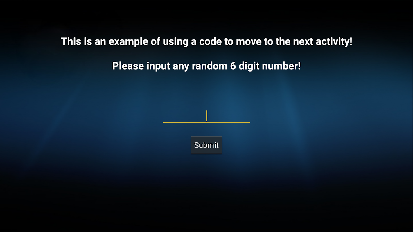 This application will show an example of a project to show moving between activitys after entering a random number into a textbox and then pressing submit to move to next activity