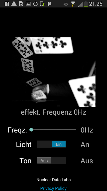 Also you can turn the light and the sound on and off. So you can use flash and sound, only flash or only sound on the selected frequency.