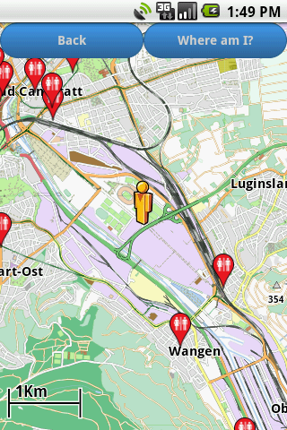Not in Stuttgart yet? The App automatically switches to simulation mode. 'Fly' to any place on the map like Superman and discover the available amenities before you go there!