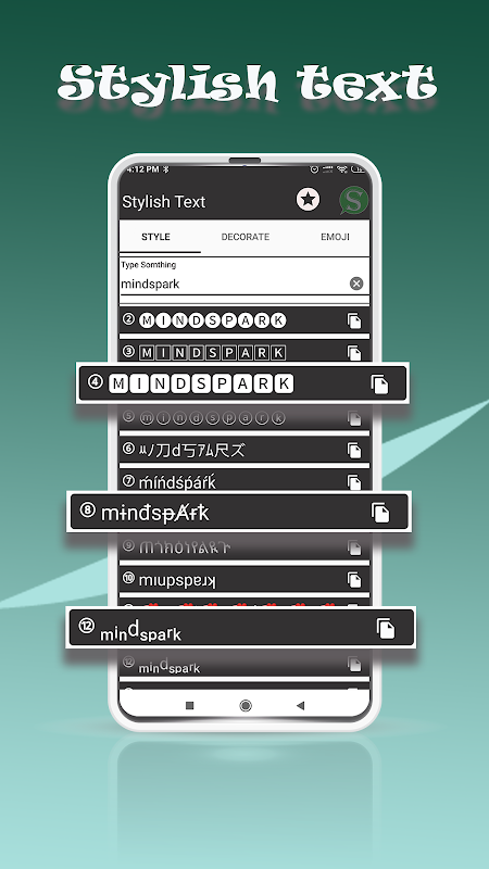 您的文字將在視圖中自動轉換為其他時尚的文字樣式。只需單擊您喜歡的文本的“複製”按鈕,它將被複製,因此只需將其粘貼到任何聊天應用程序中的任何位置或任何位置即可。