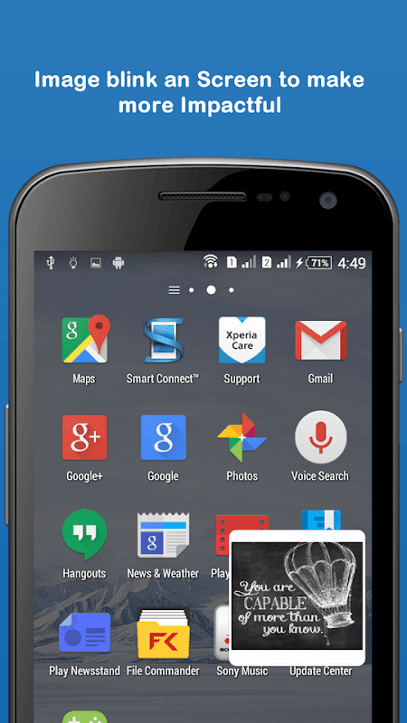 The application will be running in the background and from time to time it will show up a short subliminal message with a high impact on your mind. You may notice it or not but your mind will.