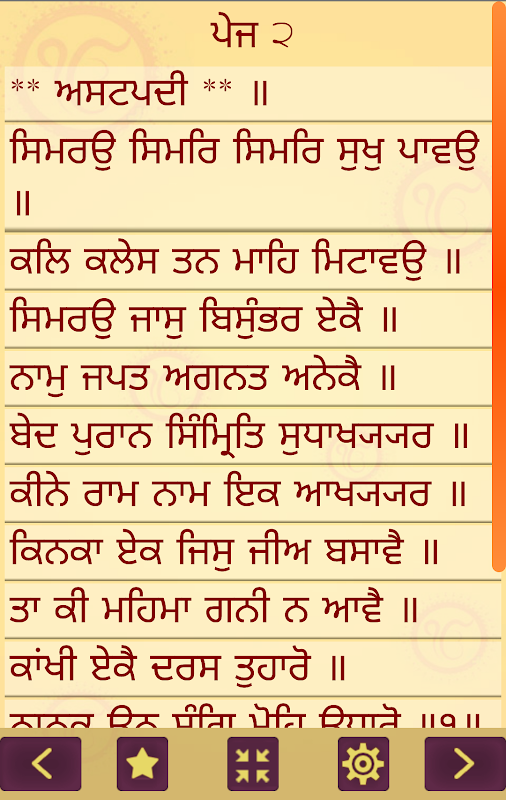 該應用程序是與Sukhmani Sahib(印地語),旁遮普語(古爾穆克語)和英語腳本一起使用的多語言應用程序。英文腳本還包含翻譯。