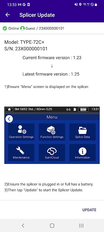 By using the app with Sumitomo Electric's applicable splicers, you will be able to ensure that your machine and your accessories will be up-to-date and fully functional, while cutting down on time and work needed to communicate splice results both internally and externally to your organization. The app will also assist you to manage your splicer as an asset by providing security features, and during work with useful tips and tricks.